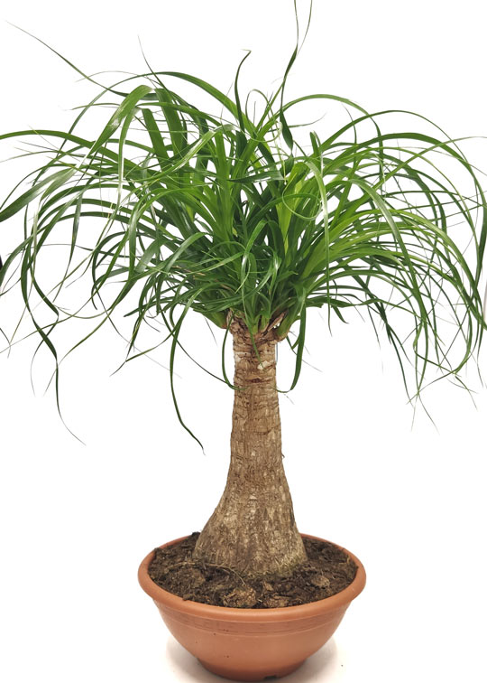 Planta perenne muy ornamental, apreciada por su tronco engrosado en la base que almacena agua y sus largas hojas finas y arqueadas 🌿✨. Su aspecto escultórico y exótico la convierte en una planta muy decorativa. Es de porte lento y estructural, pudiendo alcanzar entre 1 y 3 metros en interior. Desarrollando un tronco muy característico con la edad.